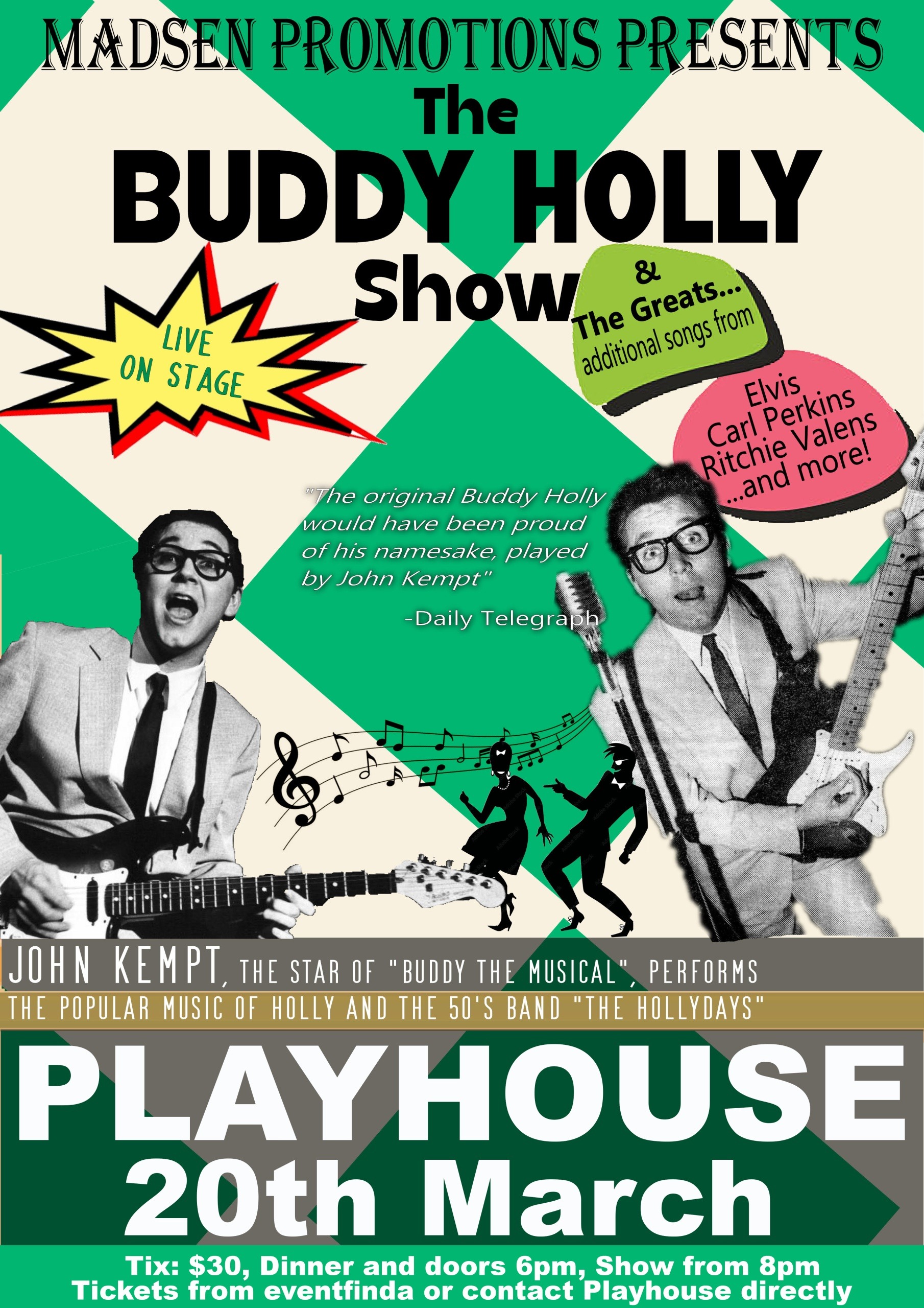 Friday 20th March Buddy Holly Tribute Tix $30, Dinner and doors 6pm, Show from 8pm. John Kempt, star of Buddy The Musical, and his crew rediscover the amazing Buddy Holly […]